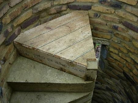 Spring 2007 and it's time to get on with building up the tower. One of the first things to do was build the wooden platform at the top of the spiral staircase.