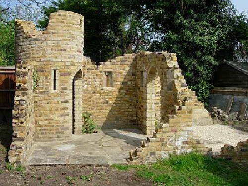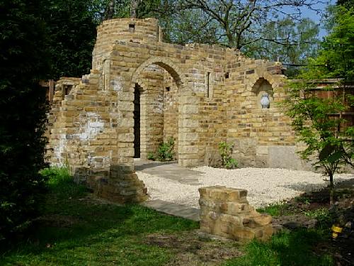 End of April and the folly is finally complete. The inner courtyard has been paved and the suggestion of a path laid in the outer courtyard, which has been gravelled.