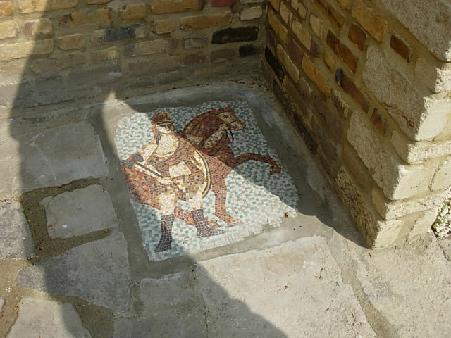 My wife 'V' has been making a mosaic section of flooring copied from a Roman villa and this has been laid in a corner of the paved inner courtyard.