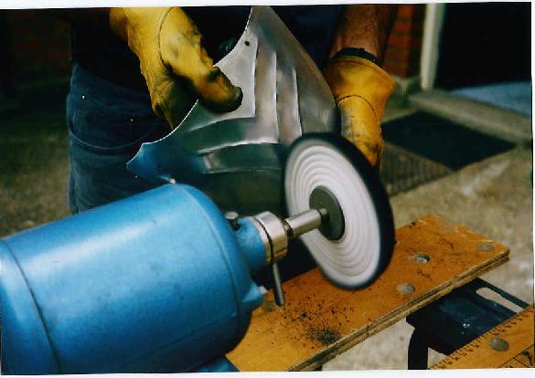 A: Not all the armour I make is polished to a mirror finish. I do prefer the armour polished - but I must admit it is a very time-consuming look to achieve. A very satisfactory silk finish can be produced by rubbing with a mildly abrasive foam pad. The finish shown in the armour below, which is one of the earliest I made, is produced by using a black graphite-based compound - applied quite thinly with a cloth dampened with white spirit. This is allowed to dry and then buffed with wire wool.