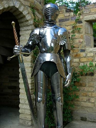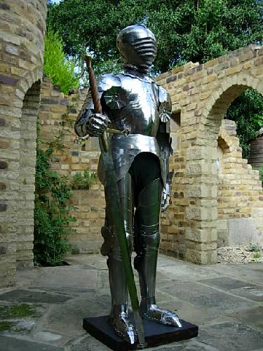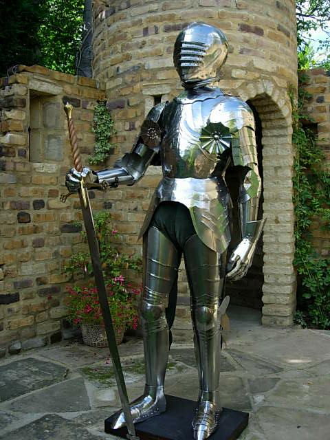 The following images show the finished armour in the courtyard of the Folly - August 2007